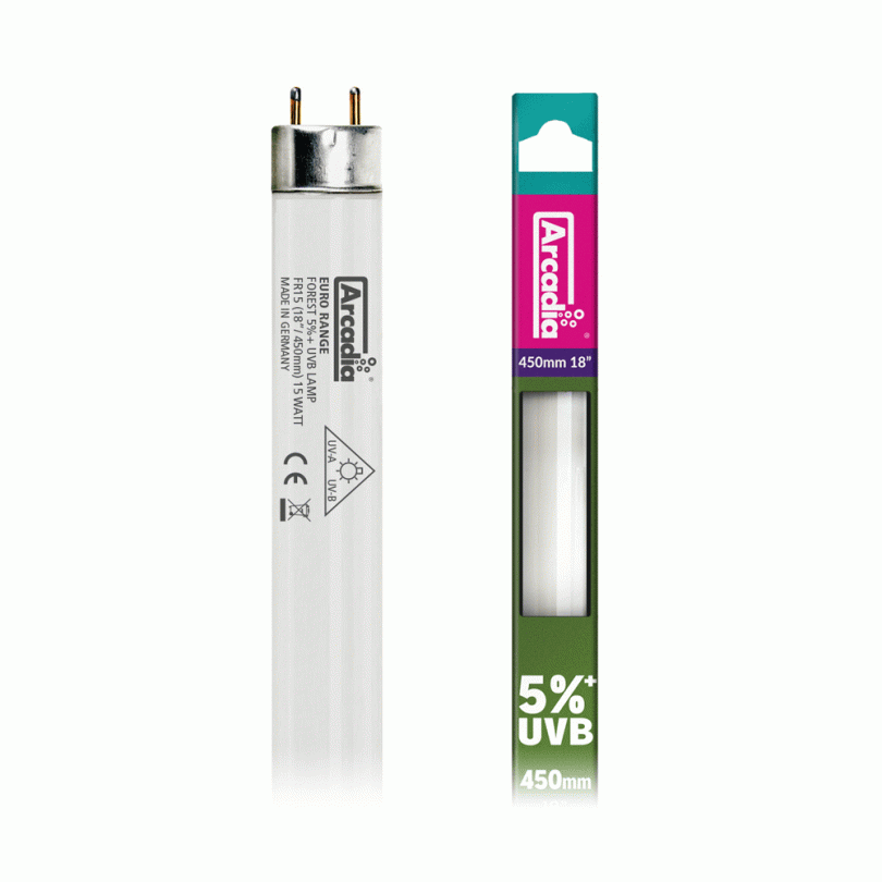 Az Arcadia D3+ Forest 5% 15W, 450 mm egy T8-as szabványú, lineáris fénycső, amelyet kifejezetten a trópusi és erdei élőhelyekről származó hüllőfajok igényeire terveztek. Az 5%-os UVB sugárzás a természetes, fák lombkoronája által szűrt napfényt utánozza.