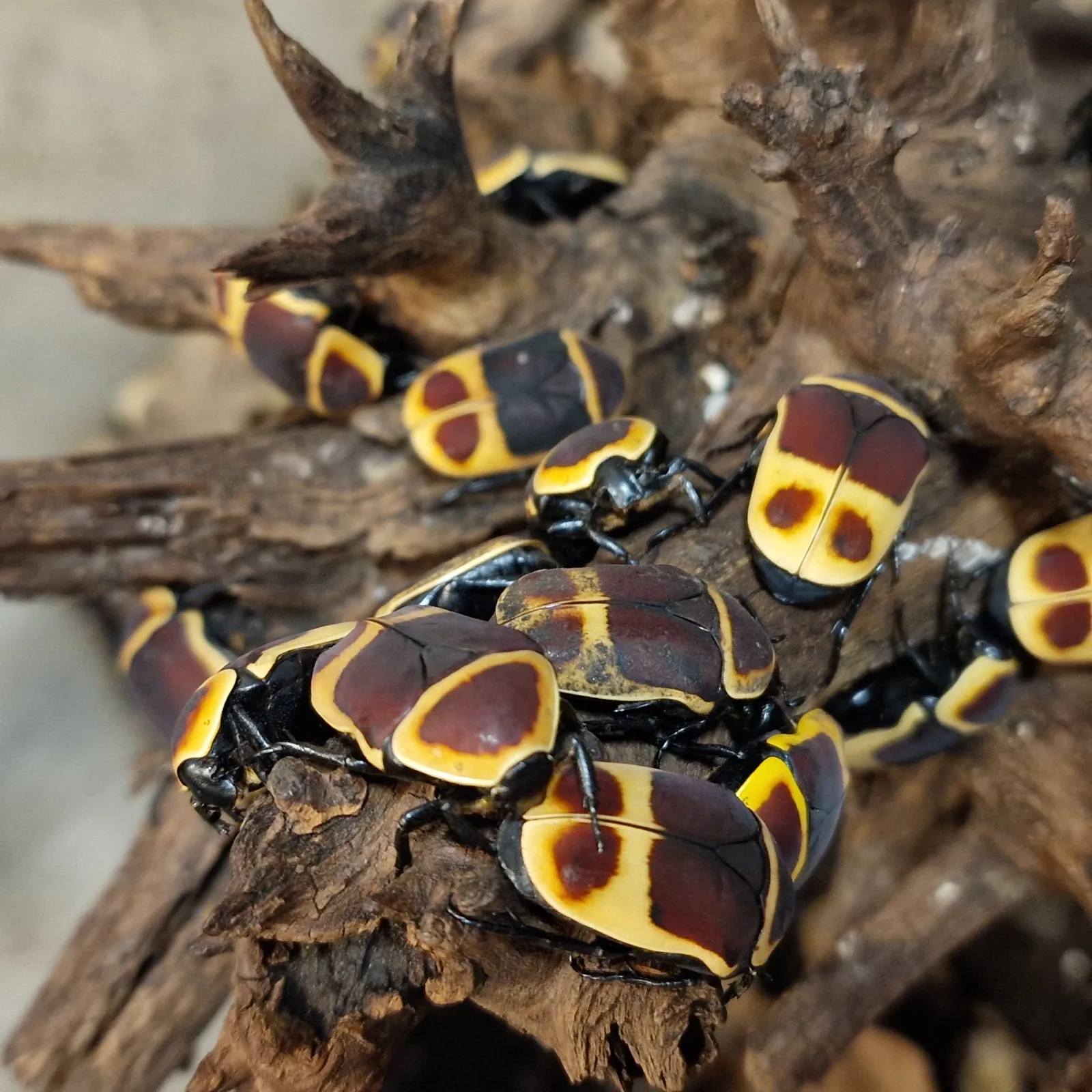 🔸 Élénk színek – sárga-fekete mintázat, ami igazi dísze lesz a bogárterráriumnak