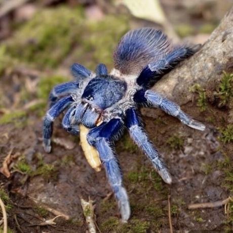 Brazíliából származó, nagy termetű és rendkívül látványos madárpók. Jellegzetes, kékes árnyalatú lábai és sötét, robusztus testfelépítése miatt az egyik legszebb dél-amerikai faj. Földlakó életmódot folytat, aktív, erőteljes megjelenésű pók, amely megfelelő körülmények között gyorsan fejlődik.
