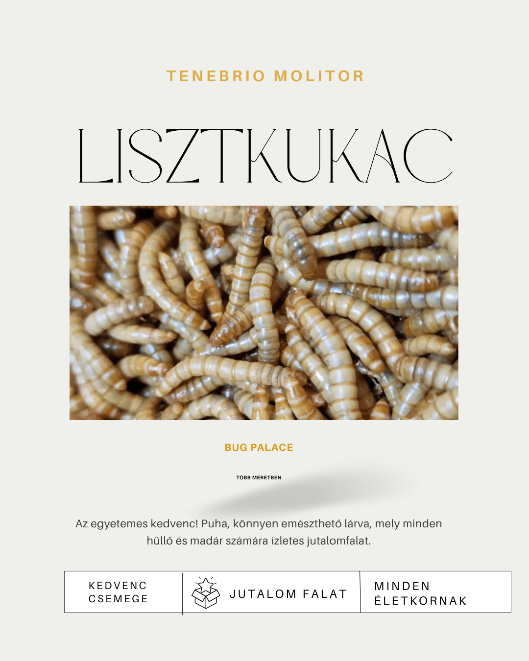 • Kiváló kiegészítő eleség madarak, hüllők és pókok számára